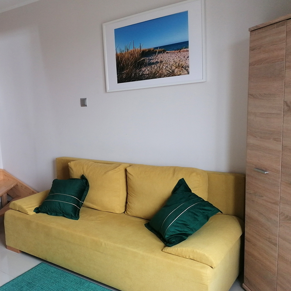 To dwupoziomowy, komfortowo wyposażony apartament składający się z salonu z podwójną kanapą z aneksem kuchennym i sypialni na górze z małżeńskim łóżkiem. Apartament z wygodnym balkonem z widokiem na zatokę, przeznaczony jest dla maksymalnie 4 osób. Zaprojektowany z dbałością o każdy szczegół dla wygody gości, znakomity dla rodziny lub grupy znajomych. Odpocznij w Jastarni i zabierz do domu piękne wspomnienia.